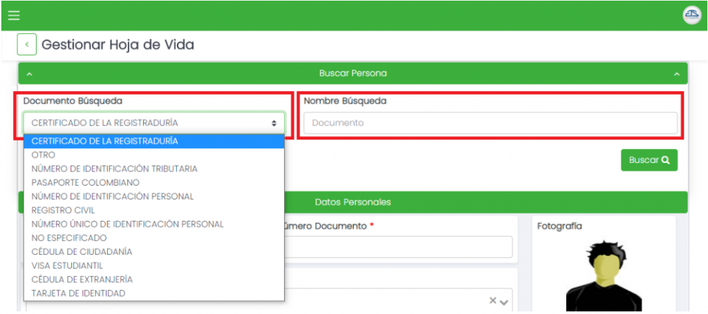 número de documento de esta persona no esté en el sistema así como se muestra en la imagen.
